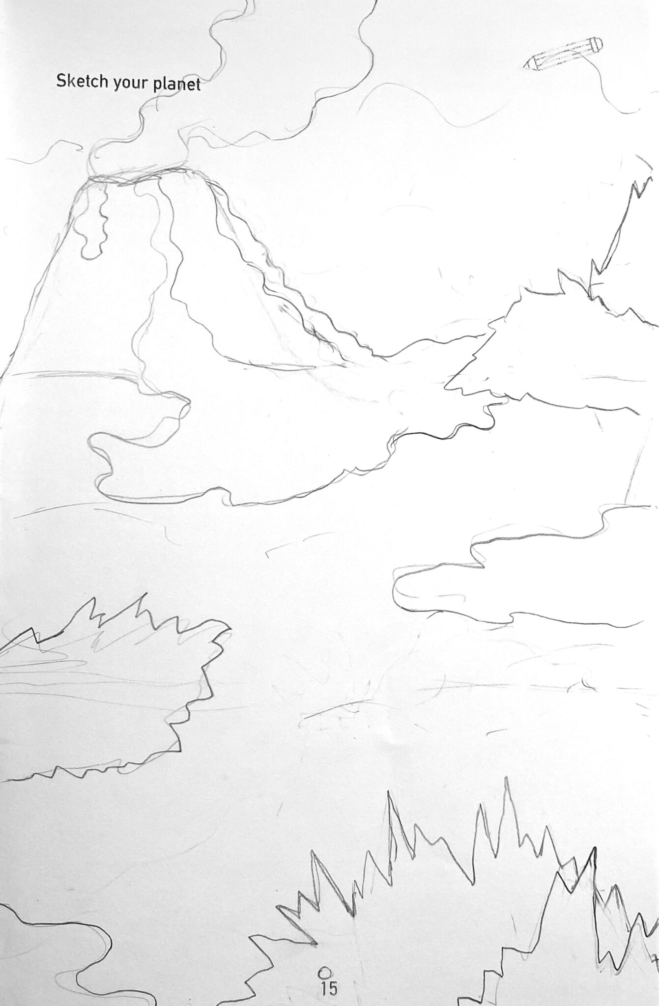 In the desert region of an Earth-like planet, an alien is on the hunt Sketchbook: Alien design An alien hides in the desert sand, camouflaged to look like water, and catches thirsty prey Sketchbook brainstorm: An alien living on an Earth-like planet A translucent alien floats above the icy waters of an an Earth-like planet Story board for a chase scene on a Desert Planet Desert Planet: The prey got away! Journal sketch of a Diamond Planet landscape, with volcano, tar lakes, and crystal formations Diamond Planet: an alien, covered in diamond crystals, drinks from the tar lake Like this project? Appreciate Other projects View View Current View View View View View Previous Next Back to portfolio