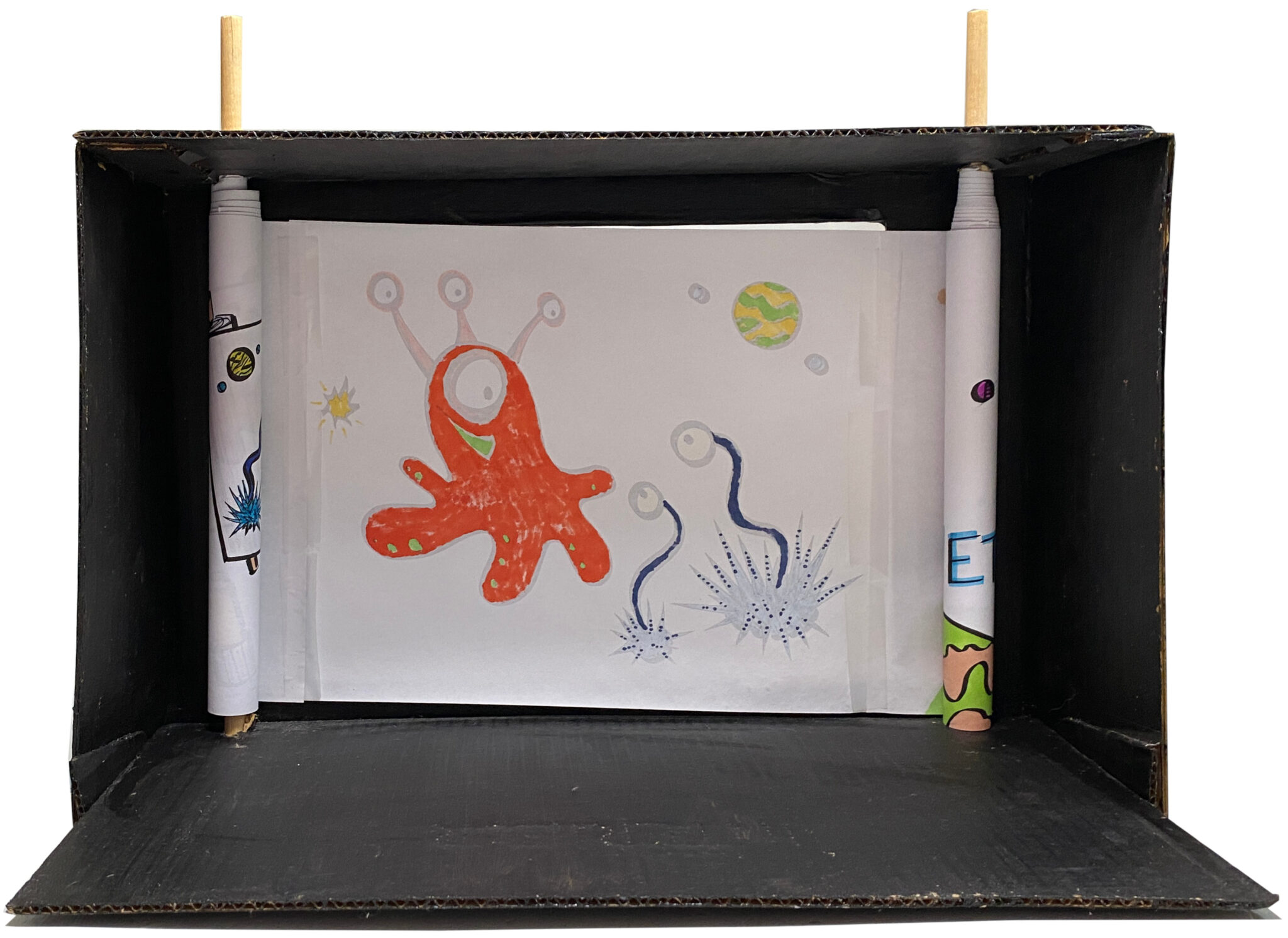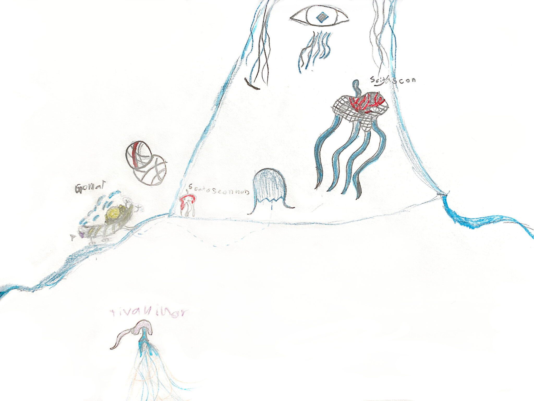 Crankie Theatre, front view Crankie Theatre, back view Ocean World, with one moon, orbiting a blue star Ocean World, a camouflaged alien Ocean World, a sad mermaid Ice World, covered with blue cryovolcanoes and pink nitrogen ice Ice Moon aliens inside a volcano that is a transportation device Ice World, aliens Eyeball Planet, with a lava moon Aliens inhabiting the Eyeball Planet's lava moon float in its hot air Like this project? Appreciate Other projects View View View View Current View View View Previous Next Back to portfolio